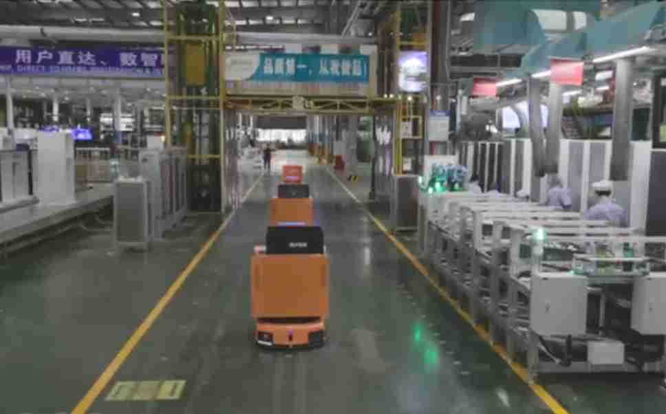 为车载冰箱物流配送打造的智能解决方案,,,包含产中物流通过潜伏举升AMR搬运至线边,,,,产后成品物流智能仓储,,,,流程包含产中物流智能齐套入库,,线边安灯叫料AMR智能配送至线边,,成品入库、、、、出库,,,,通过无人堆高车机器人,,,,智能仓储管理替代人工作业管理,,,实现更高存储、、更高效率、、更具柔性化的解决方案。。